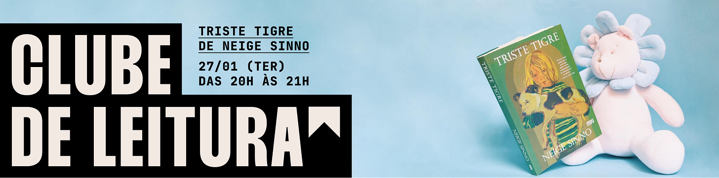 o escolhido para janeiro é TRISTE TIGRE, de Neige Sinno — uma obra que vem reverberando desde 2023, ganhando destaque e prêmios como o Femina, o Goncourt dos Estudantes e o Prêmio Strega Europeu. já estávamos de olho nesse título desde a mesa com a autora na FLIP deste ano. foi somente agora, em 2025, que o título chegou ao brasil em tradução de Mariana Delfini e publicada pela Editora Record.